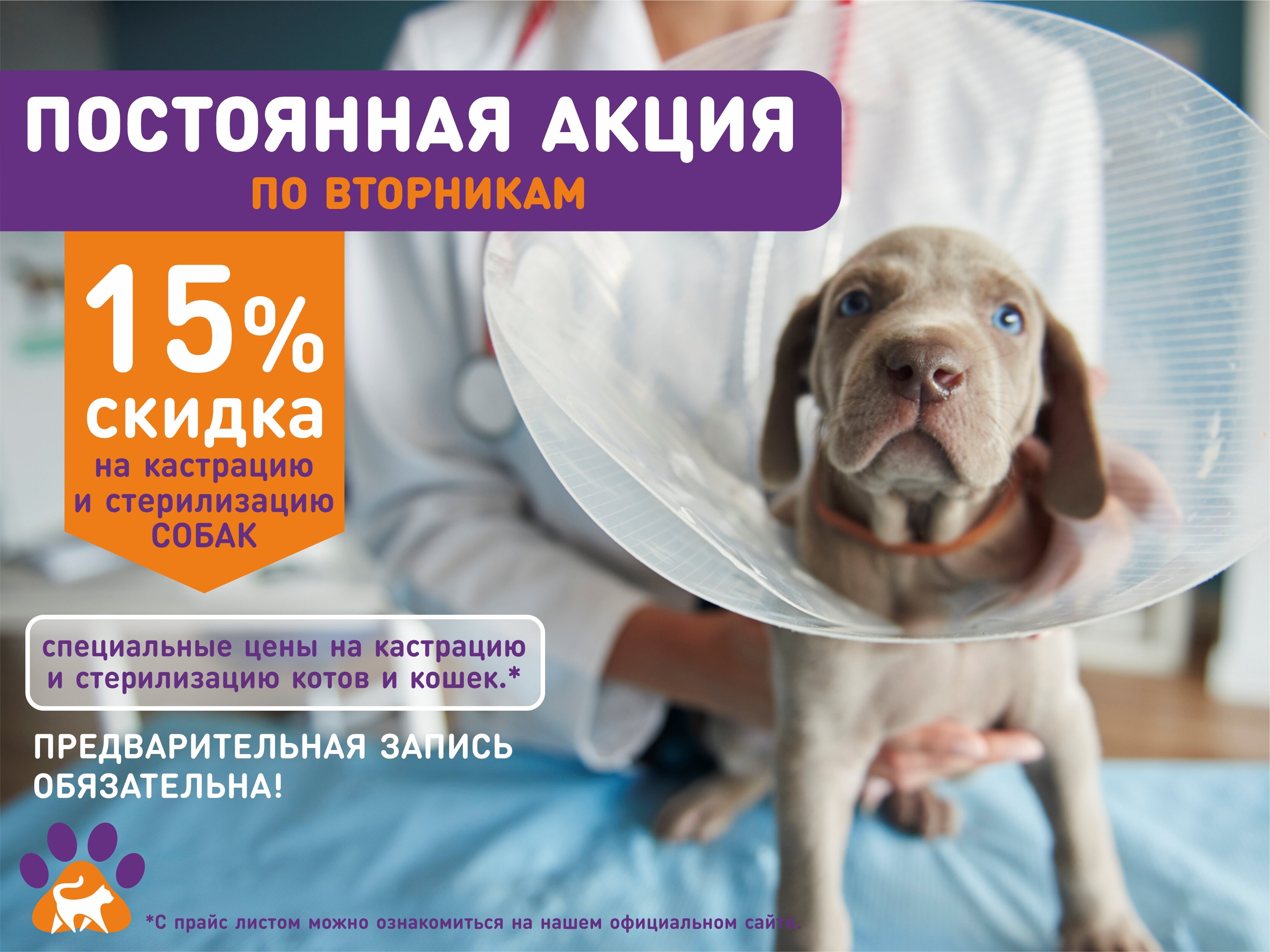 В числе наших услуг анализ крови, анализы на панлейкопению, пироплазмоз, токсоплазмоз, УЗИ, ЭКГ, рентген, анестезия, вакцинация кошек, собак и кроликов, прививка против бешенства, взвешивание животных, дегельминтизация кошек и собак, кастрация, проведение операции кесарево сечение, купирование ушей и хвоста, обработка от блох, прием родов у животных, стерилизация, удаление зубного камня, удаление зубов, извлечение клещей, удаление параанальных желез, уколы, чистка зубов, чипирование кошек и собак, услуги груминга (в т.ч. мытье, подстригание когтей и чистка ушей), эвтаназия и кремация животных, приём ветеринарного дерматолога, кардиолога, стоматолога, терапевта, хирурга, гинеколога и диагноста, оформление ветпаспорта, диспансеризация животных, лечение грызунов и экзотических животных.